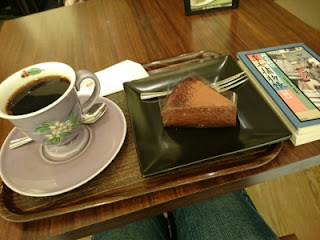 小川珈琲の喫茶店でチョコレートケーキとコーヒー。
